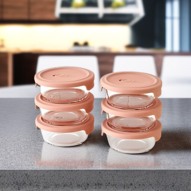 صندوق تخزين طعام الأطفال مع غطاء، وعاء زجاجي مدرج لحفظ طعام الأطفال طازجاً