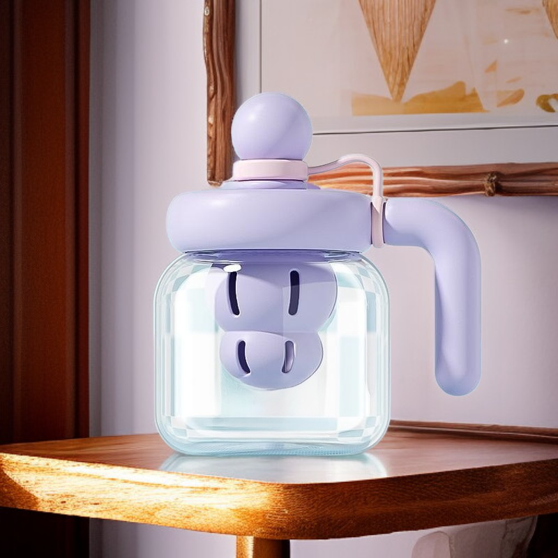 كوب ماء زجاجي كبير الحجم للنساء مع مصاصة للاستخدام في المكتب والطاولة