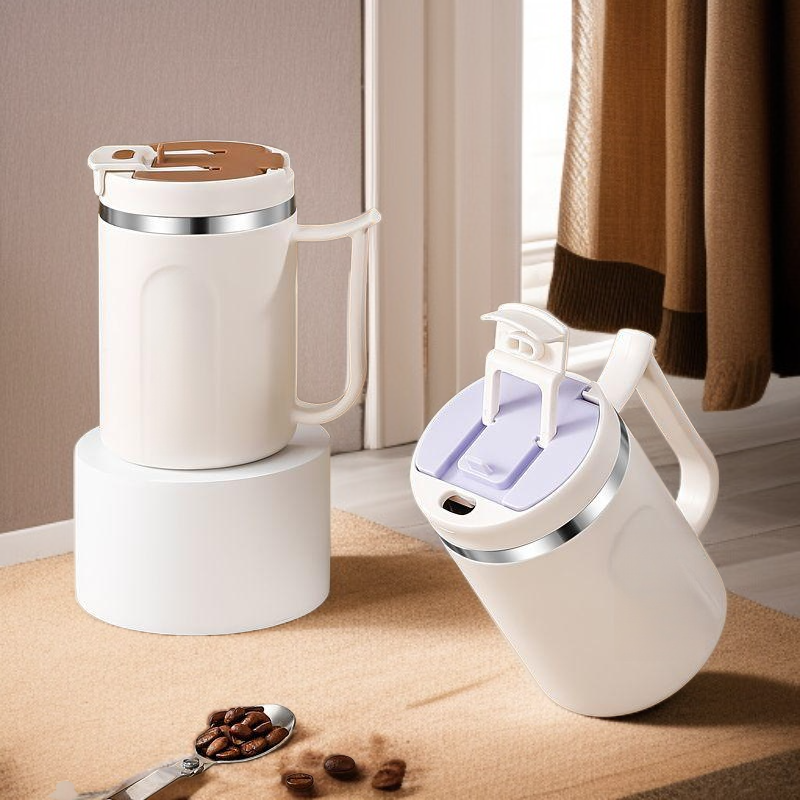 كوب قهوة عالي الجمال مع غطاء وملعقة، مقاوم للحرارة وسهل الحمل